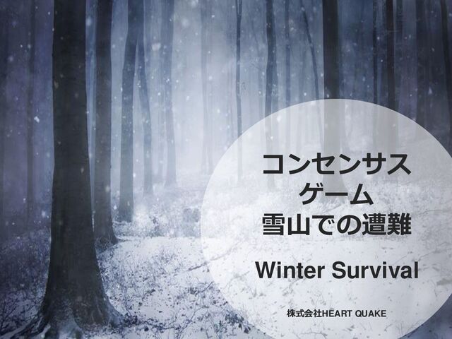2 株式会社HEART QUAKE 雪山での遭難とは 『雪山での遭難』は チームで協力して 1つの回答を導き出す ことを目的とした コンセンサスゲーム です。(コンセンサス=合意形成)