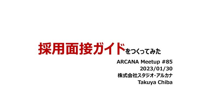 採⽤⾯接ガイドをつくってみた ARCANA Meetup #85 2023/01/30 株式会社スタジオ・アルカナ Takuya Chiba