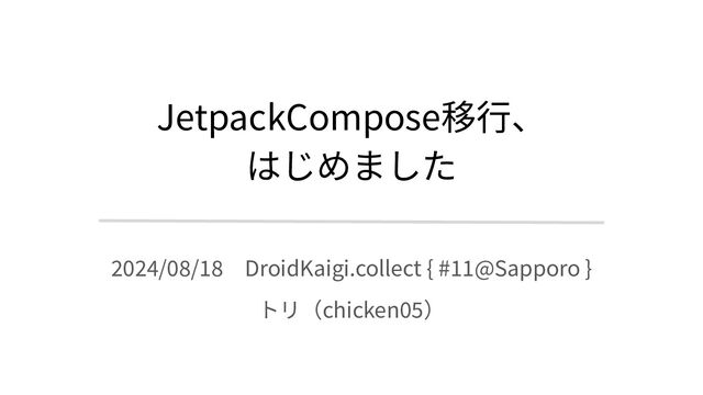 JetpackCompose移⾏、 はじめました 2024/08/18 DroidKaigi.collect { #11@Sapporo } トリ(chicken05)