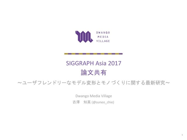 今回は、SIGGRAPH Asia 2017 にて採択された、ユーザフレンドリーなモデル変形とモノづくりに関する最新研究2本の紹介をします。