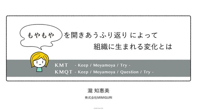 チームで"もやもや"を共有しあうふり返り手法KMT(Keep/Moyamoya/Try)、"もやもや"を問いに変えるKMQT(Keep/Moyamoya/)のやり方ややる時のポイント、このふり返りをやると何がいいのか?やってみた経験をふり返りながら考えたことを紹介しました。 ふりかえりカンファレンス2024で発表したものです。