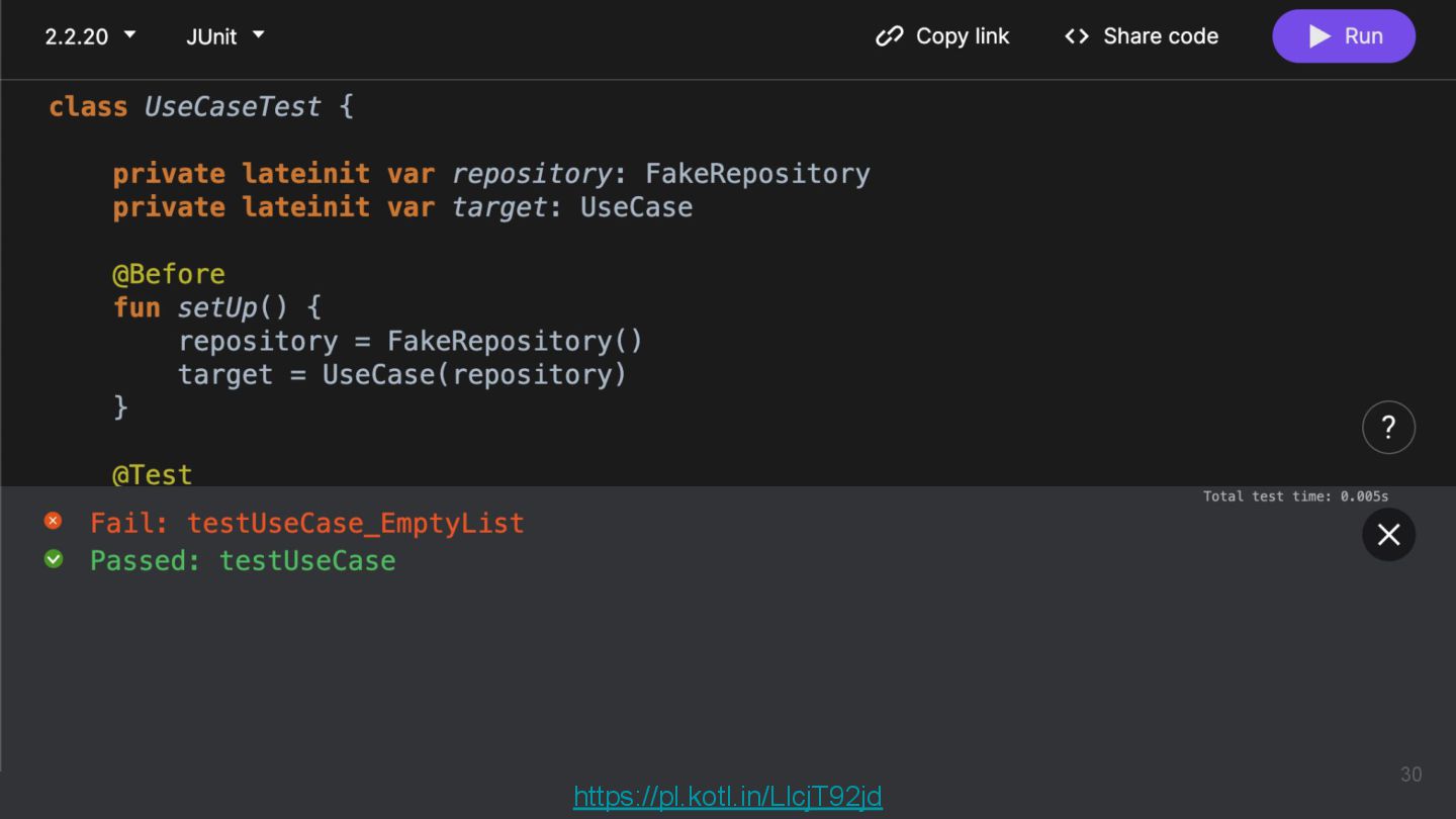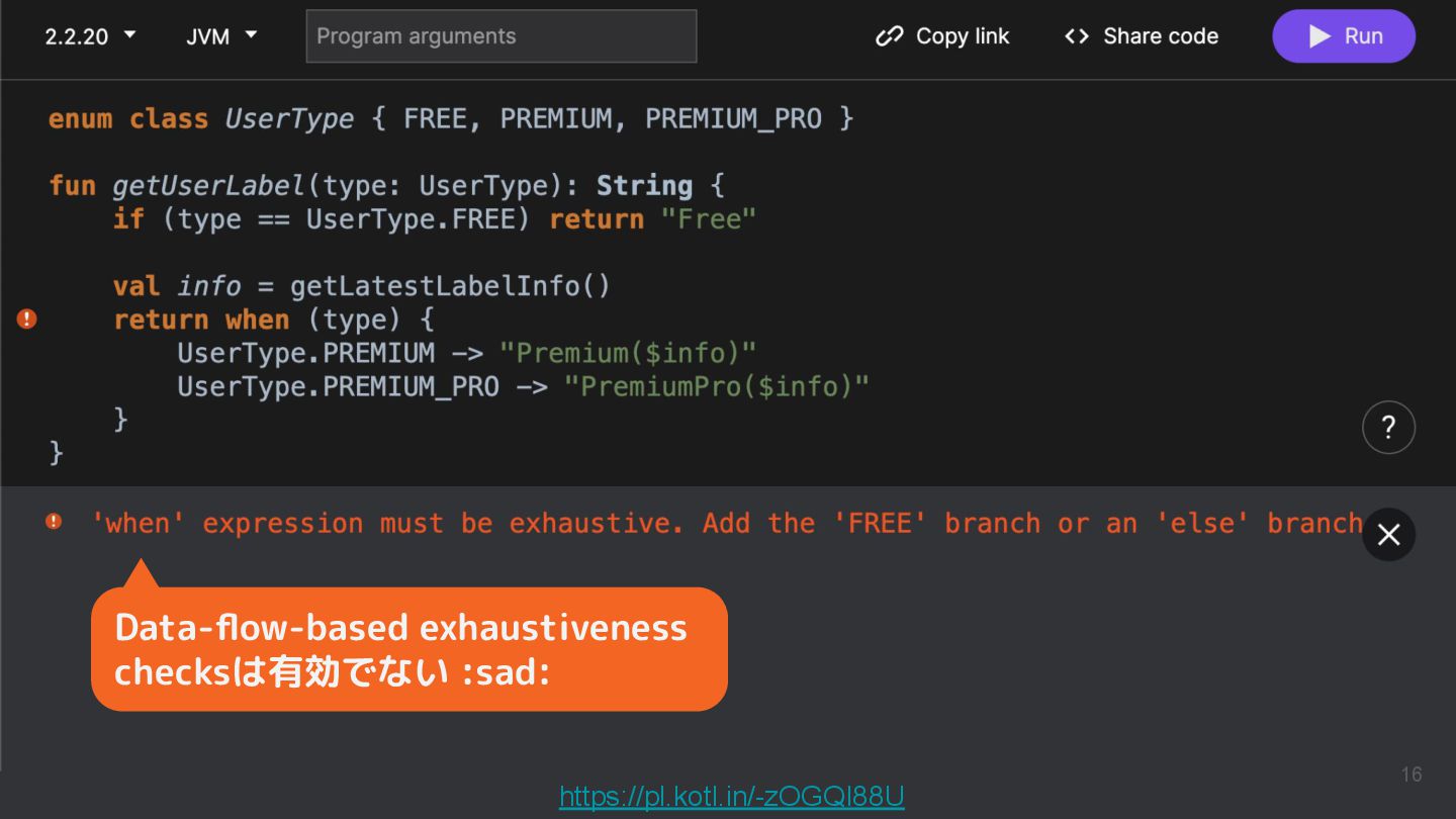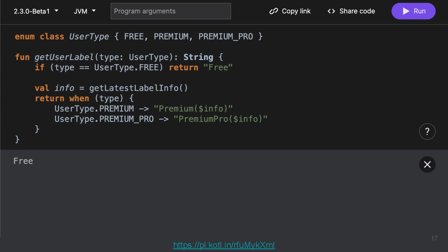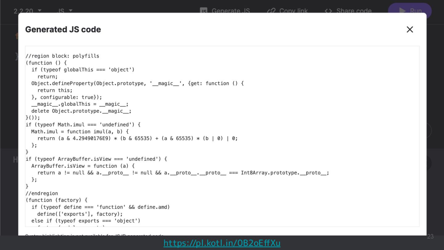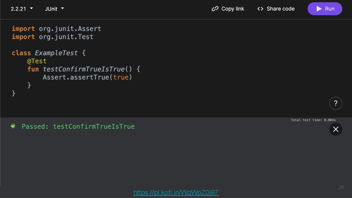 Kotlinのバージョンや実行環境を簡単に変更して、ウェブ上で実行結果まで確認できるため、手軽に動作を確認できるサンプルコードを共有するツールとして活用されています。