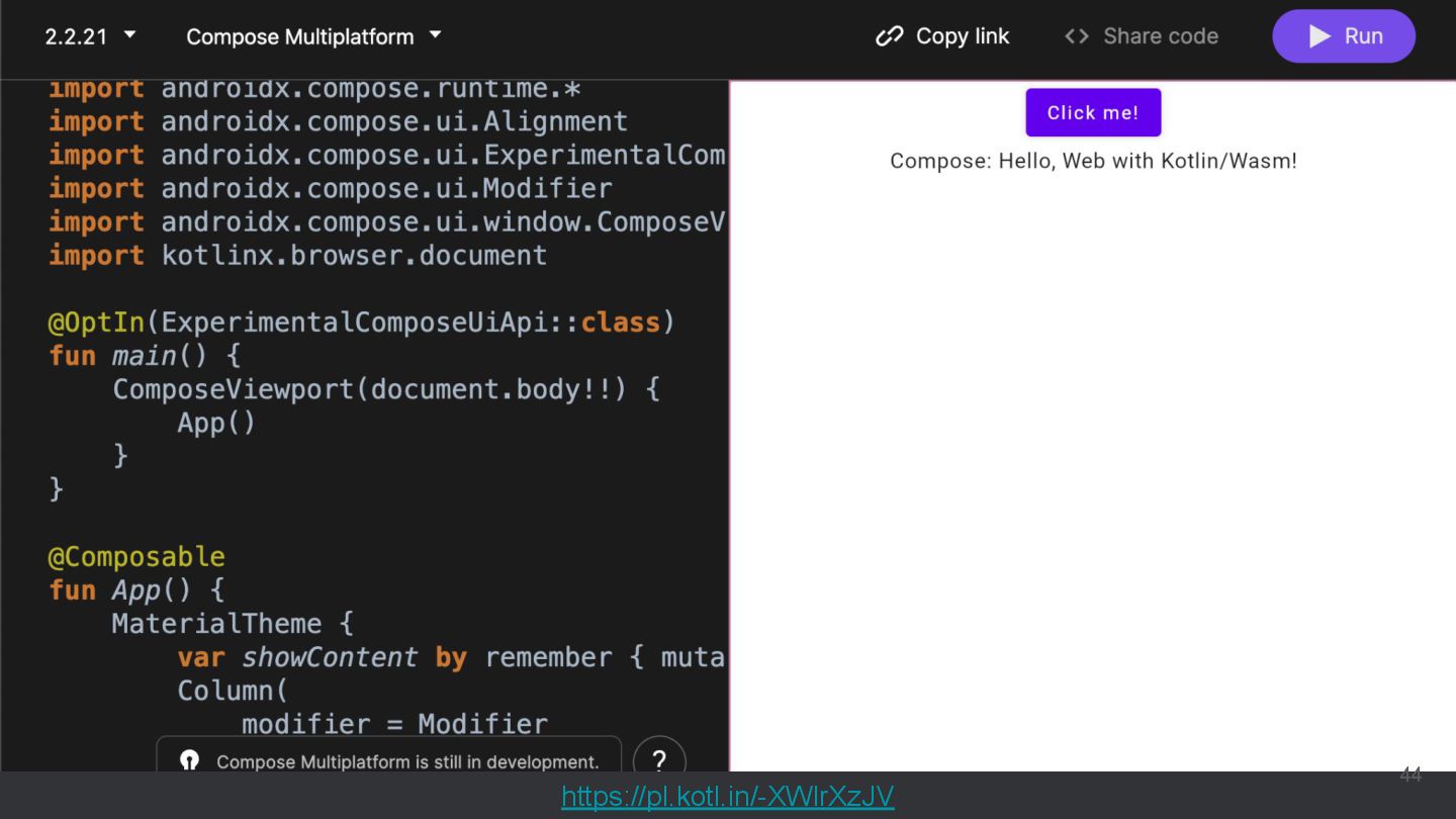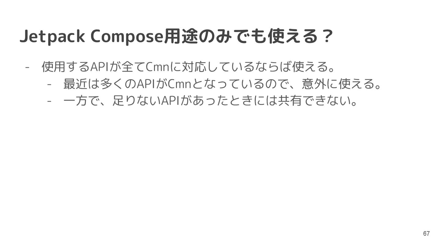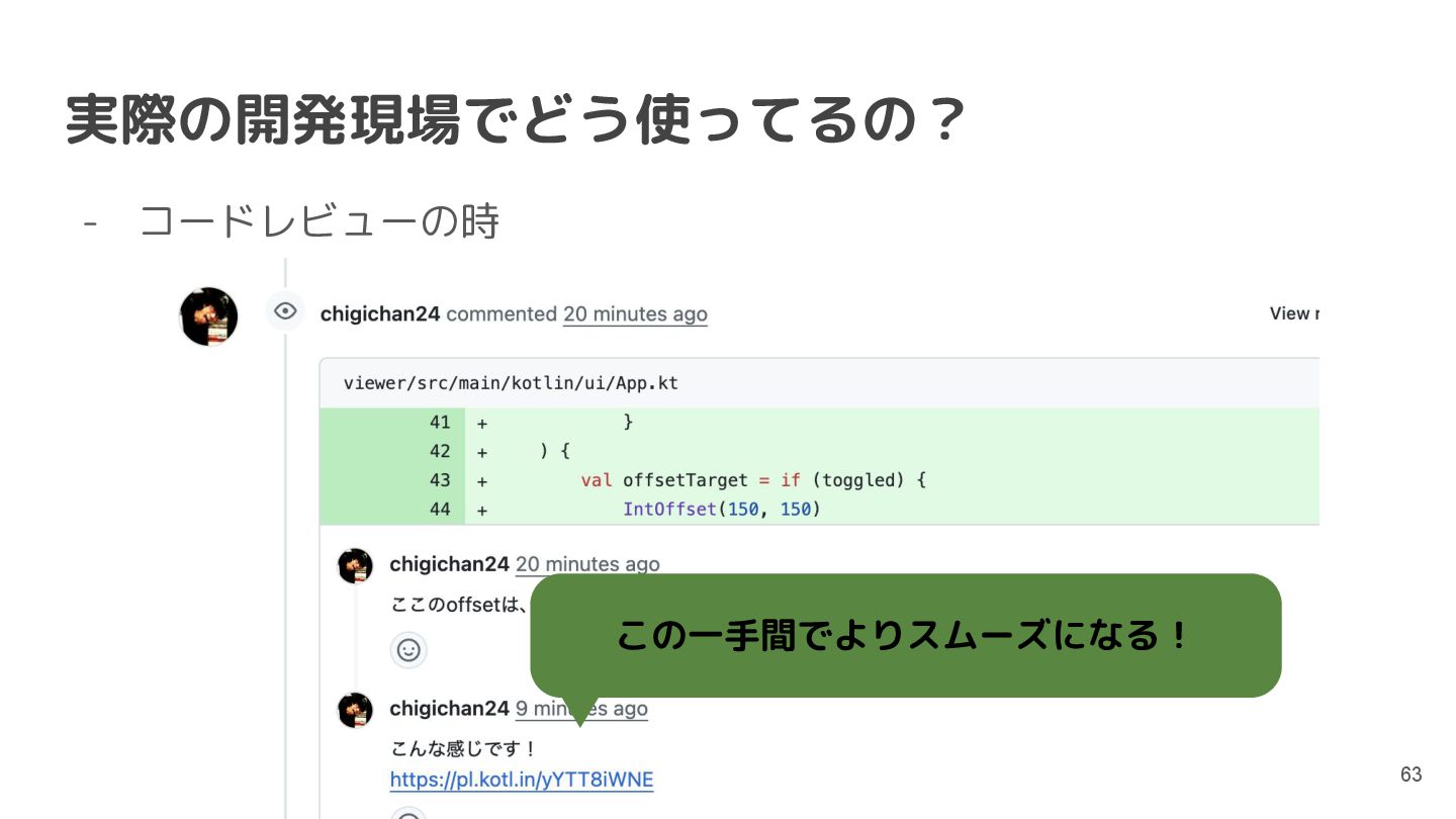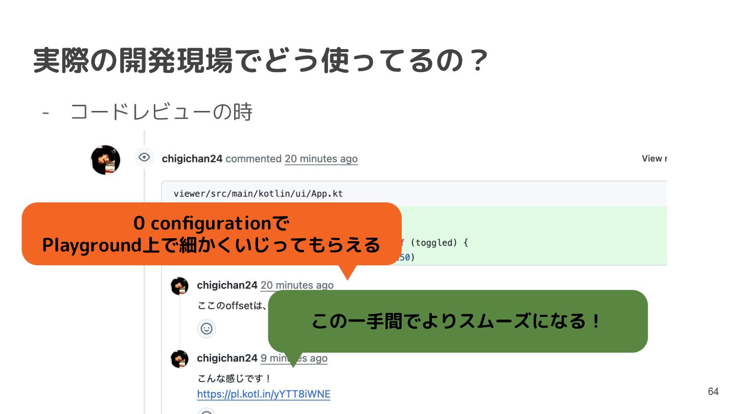 直近では、Compose MultiplatformやCanvas等の様々な実行環境のサポートが行われており、動くUIのサンプルを書いて共有することもできるようになっています。このセッションでは機能紹介からはじめ、ショートカットや、できることの限界といった点まで触れて効果的なコード共有を実現するためのベストプラクティスを含む内容を紹介します。
