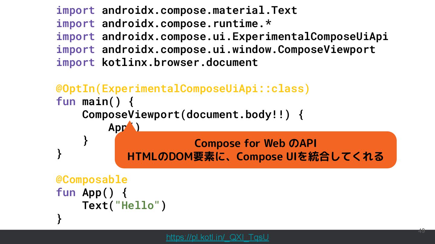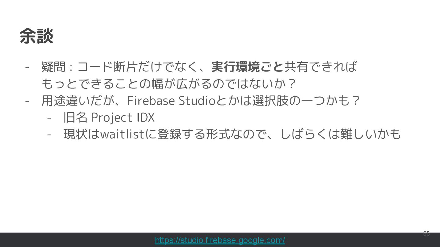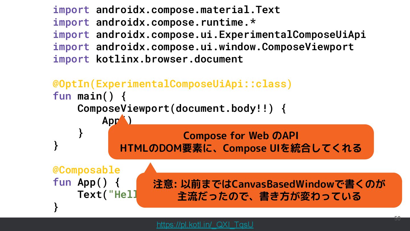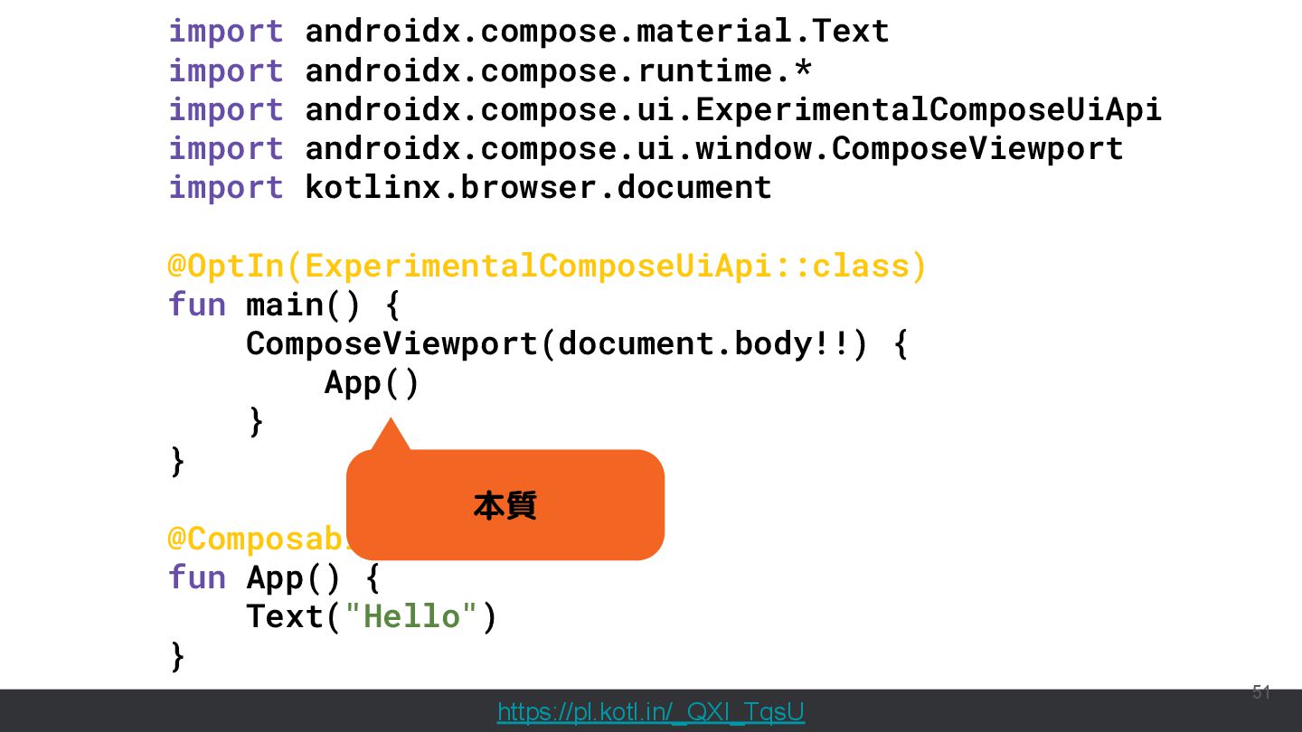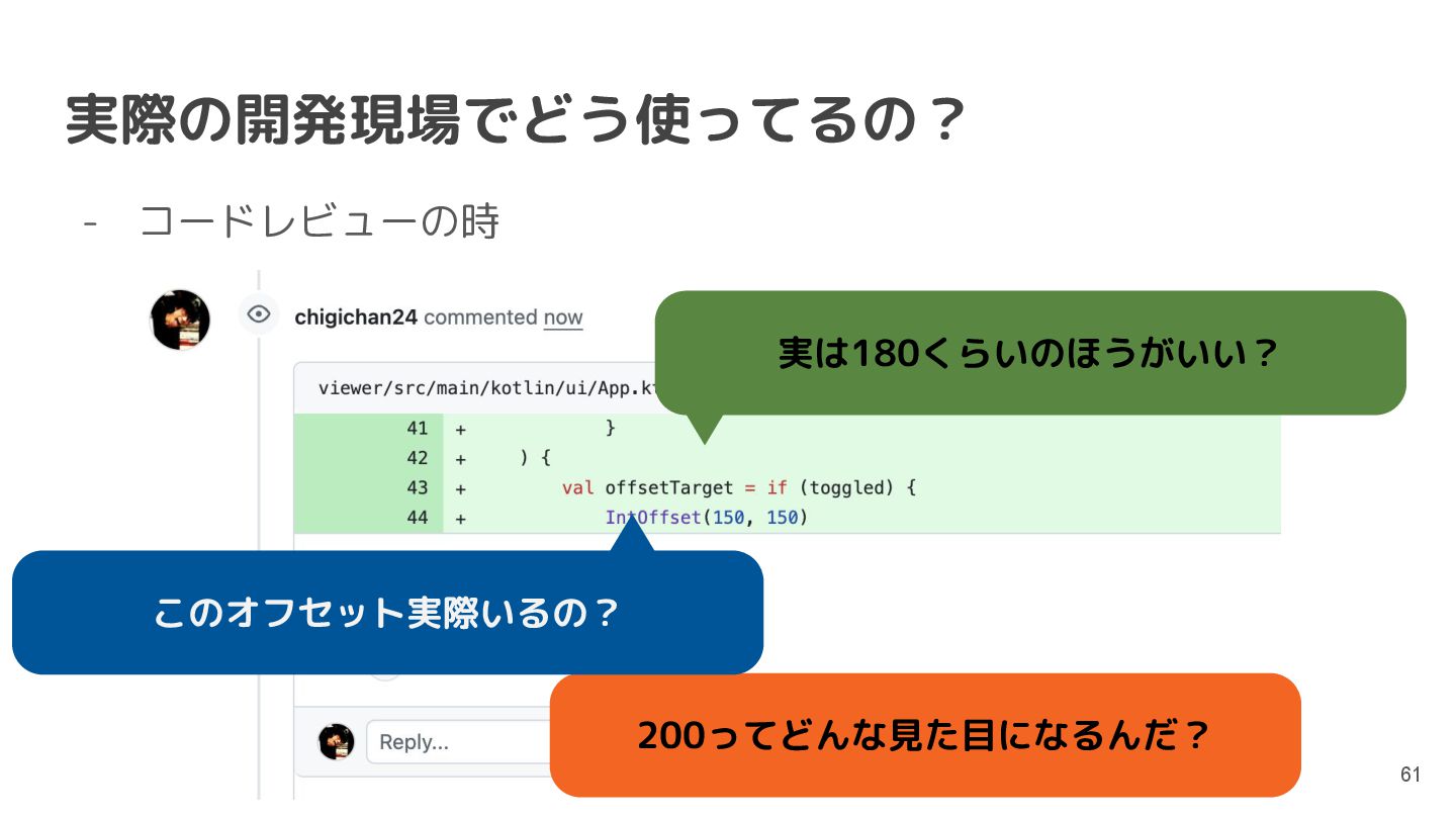 直近では、Compose MultiplatformやCanvas等の様々な実行環境のサポートが行われており、動くUIのサンプルを書いて共有することもできるようになっています。このセッションでは機能紹介からはじめ、ショートカットや、できることの限界といった点まで触れて効果的なコード共有を実現するためのベストプラクティスを含む内容を紹介します。