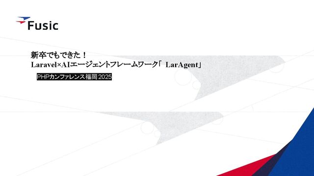 ©Fusic Co., Ltd. 1 新卒でもできた! Laravel×AIエージェントフレームワーク「 LarAgent」 PHPカンファレンス福岡2025