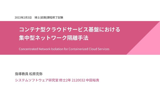 コンテナ型クラウドサービス基盤における集中型ネットワーク隔離手法/ master-thesis