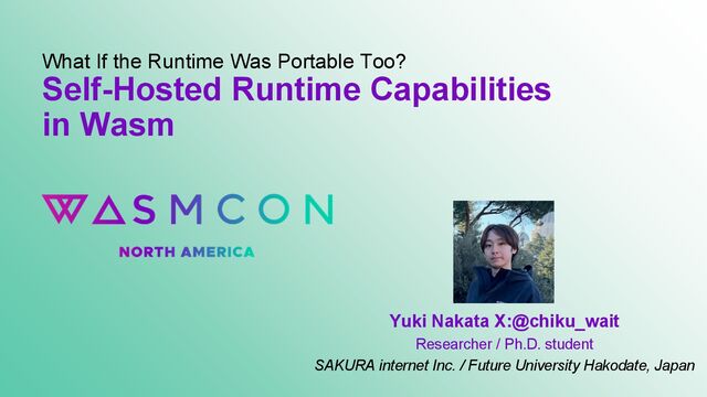 features and runtime capabilities • Can run on any runtime • Significant performance overhead • Performance optimization techniques are essential • My future goal is to achieve performance equivalent to execution in existing interpreter runtimes Chiwawa: https://github.com/oss-fun/chiwawa