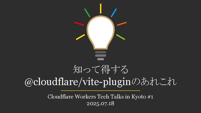 知って得する @cloudflare/vite-pluginのあれこれ Cloudflare Workers Tech Talks in Kyoto #1 2025.07.18
