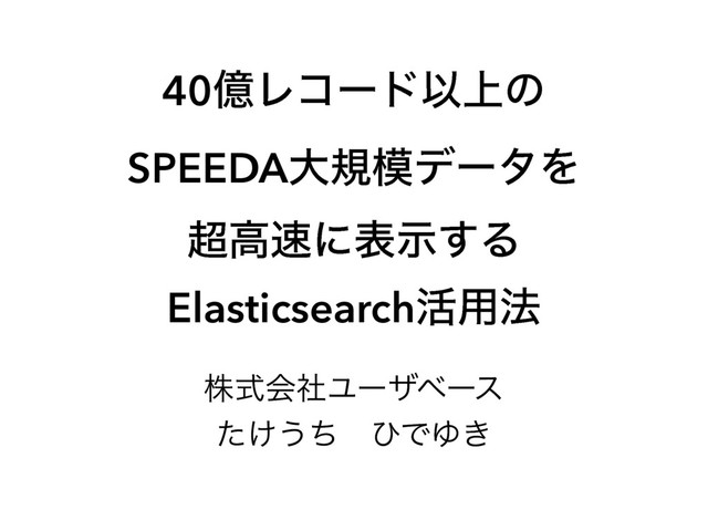 40ԯϨίʔυҎ্ͷ SPEEDAେنσʔλΛ ߴʹදࣔ͢Δ Elasticsearch׆༻๏ גࣜձࣾϢʔβϕʔε ͚ͨ͏ͪɹͻͰΏ͖