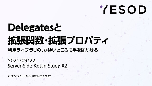 2021/09/22の Server-Side Kotlin Study #2 にて発表した、KotlinのDelegatesと拡張関数・拡張プロパティの組み合わせに関する資料です。