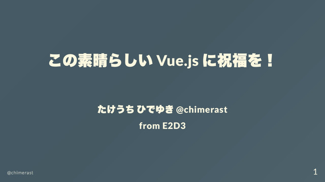 この素晴らしい Vue.js に祝福を! たけうち ひでゆき @chimerast from E2D3 @chimerast 1