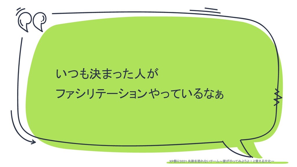 XP祭り2021 失敗を恐れないチーム〜皆がやってみようよ!と言える文化〜 いつも決まった人が ファシリテーションやっているなぁ