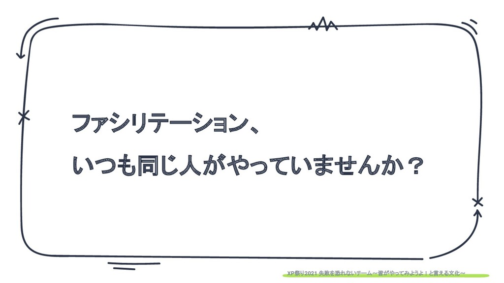 XP祭り2021 失敗を恐れないチーム〜皆がやってみようよ!と言える文化〜 ファシリテーション、 いつも同じ人がやっていませんか?
