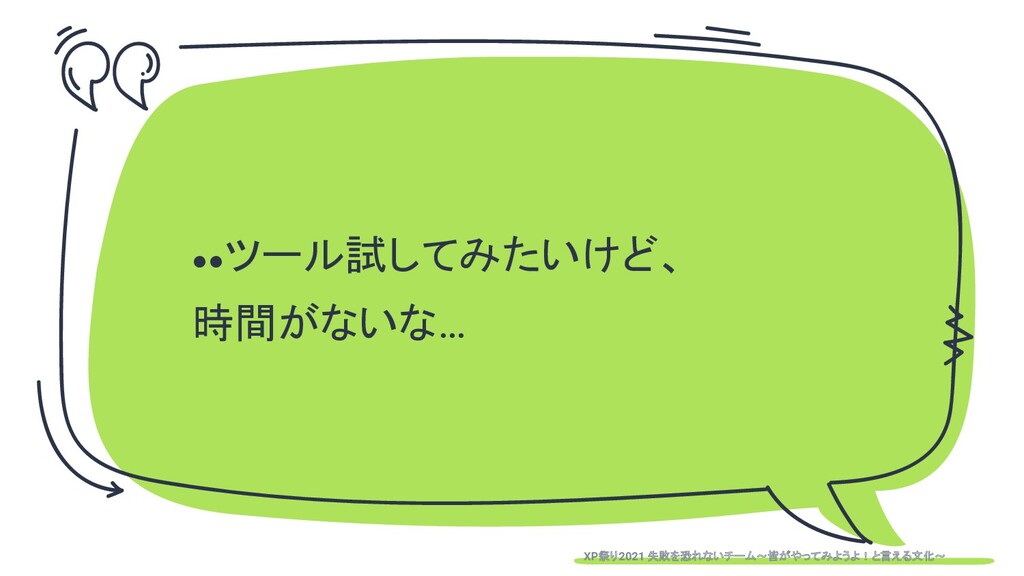 XP祭り2021 失敗を恐れないチーム〜皆がやってみようよ!と言える文化〜 ••ツール試してみたいけど、 時間がないな…