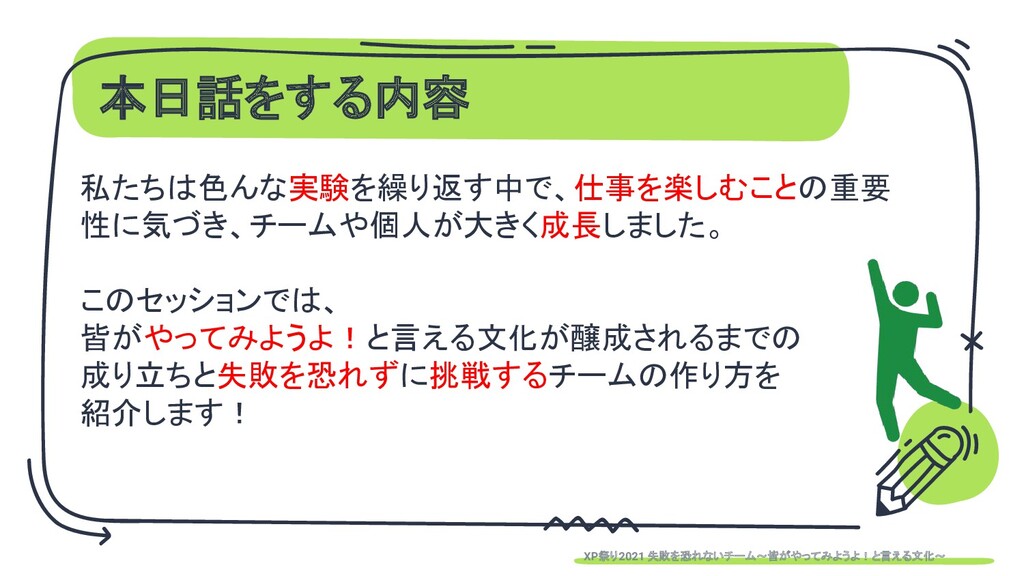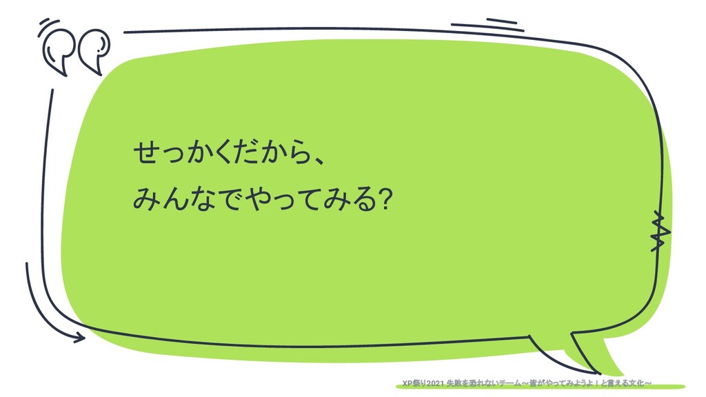XP祭り2021 失敗を恐れないチーム〜皆がやってみようよ!と言える文化〜 せっかくだから、 みんなでやってみる?