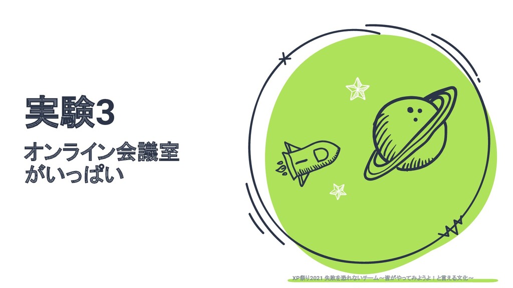 XP祭り2021 失敗を恐れないチーム〜皆がやってみようよ!と言える文化〜 オンライン会議室 がいっぱい 実験3