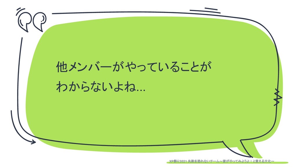 XP祭り2021 失敗を恐れないチーム〜皆がやってみようよ!と言える文化〜 他メンバーがやっていることが わからないよね...