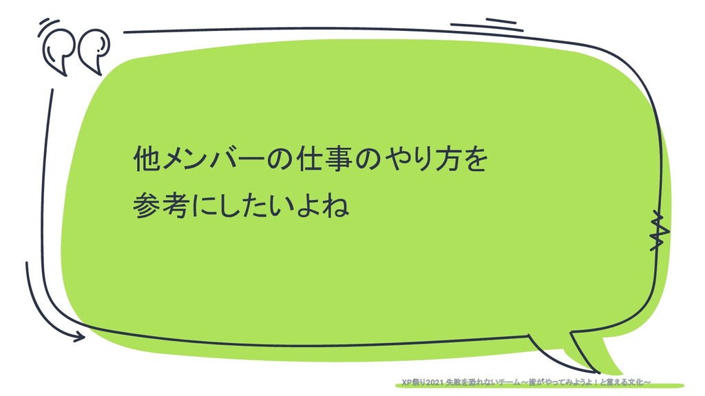 XP祭り2021 失敗を恐れないチーム〜皆がやってみようよ!と言える文化〜 他メンバーの仕事のやり方を 参考にしたいよね