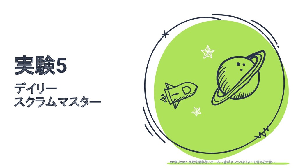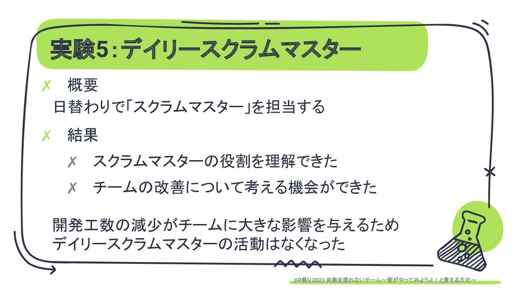 XP祭り2021 失敗を恐れないチーム〜皆がやってみようよ!と言える文化〜 デイリー スクラムマスター 実験5