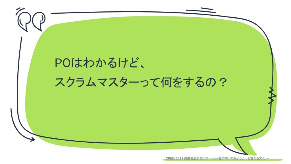 XP祭り2021 失敗を恐れないチーム〜皆がやってみようよ!と言える文化〜 POはわかるけど、 スクラムマスターって何をするの?