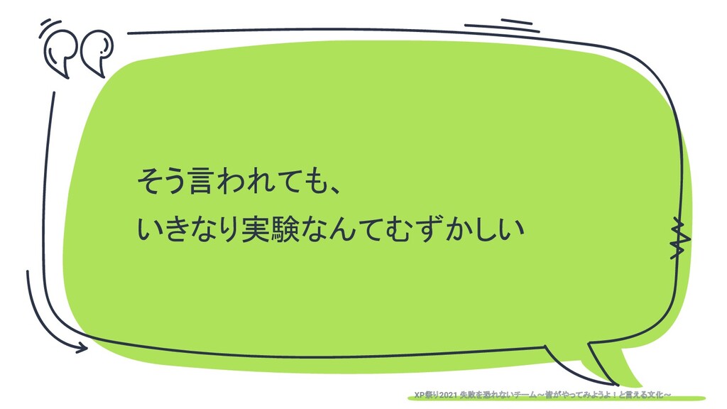 XP祭り2021 失敗を恐れないチーム〜皆がやってみようよ!と言える文化〜 そう言われても、 いきなり実験なんてむずかしい