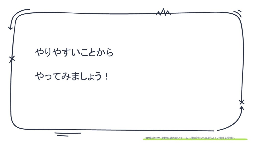 XP祭り2021 失敗を恐れないチーム〜皆がやってみようよ!と言える文化〜 やりやすいことから やってみましょう!