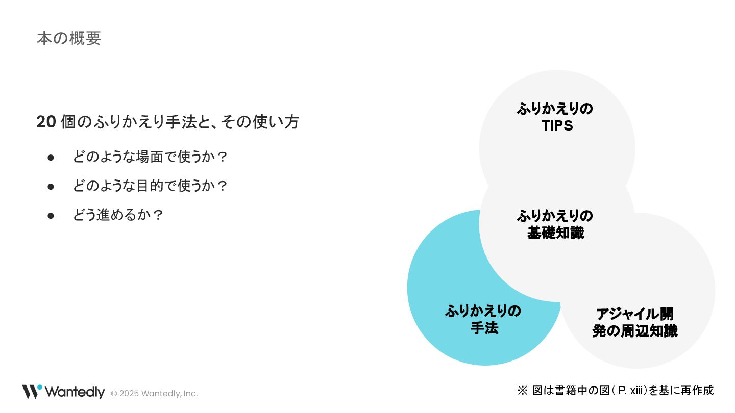 © 2025 Wantedly, Inc. 本の概要 ※ 図は書籍中の図( P. xiii)を基に再作成 ふりかえりの