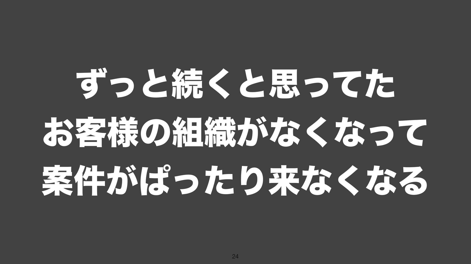 ͣͬͱଓ͘ͱࢥͬͯͨ ͓٬༷ͷ৫͕ͳ͘ͳͬͯ Ҋ͕݅ͺͬͨΓདྷͳ͘ͳΔ  24