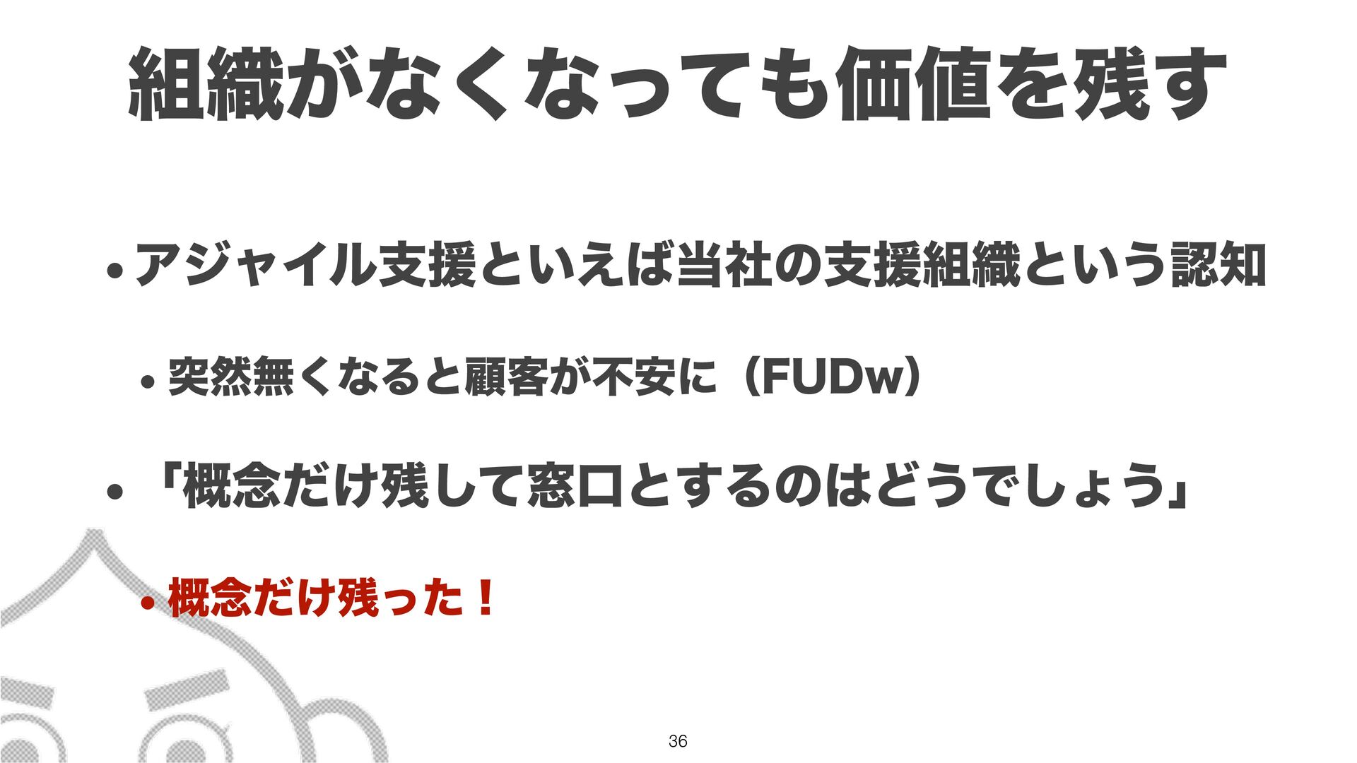 ৫͕ͳ͘ͳͬͯՁΛ͢ wΞδϟΠϧࢧԉͱ͍͑ࣾͷࢧԉ৫ͱ͍͏ೝ wಥવແ͘ͳΔͱސ٬͕ෆ҆ʹʢ'6%Xʣ wʮ֓೦͚ͩͯ͠૭ޱͱ͢ΔͷͲ͏Ͱ͠ΐ͏ʯ w֓೦͚ͩͬͨʂ  36