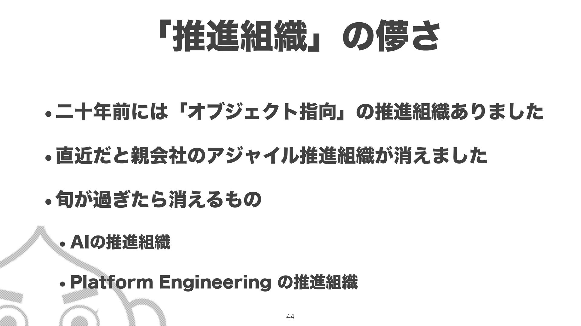 ʮਪਐ৫ʯͷၪ͞ wೋेલʹʮΦϒδΣΫτࢦʯͷਪਐ৫͋Γ·ͨ͠ wۙͩͱձࣾͷΞδϟΠϧਪਐ৫͕ফ͑·ͨ͠ w०͕ա͗ͨΒফ͑Δͷ w"*ͷਪਐ৫ w1MBUGPSN&OHJOFFSJOHͷਪਐ৫  44