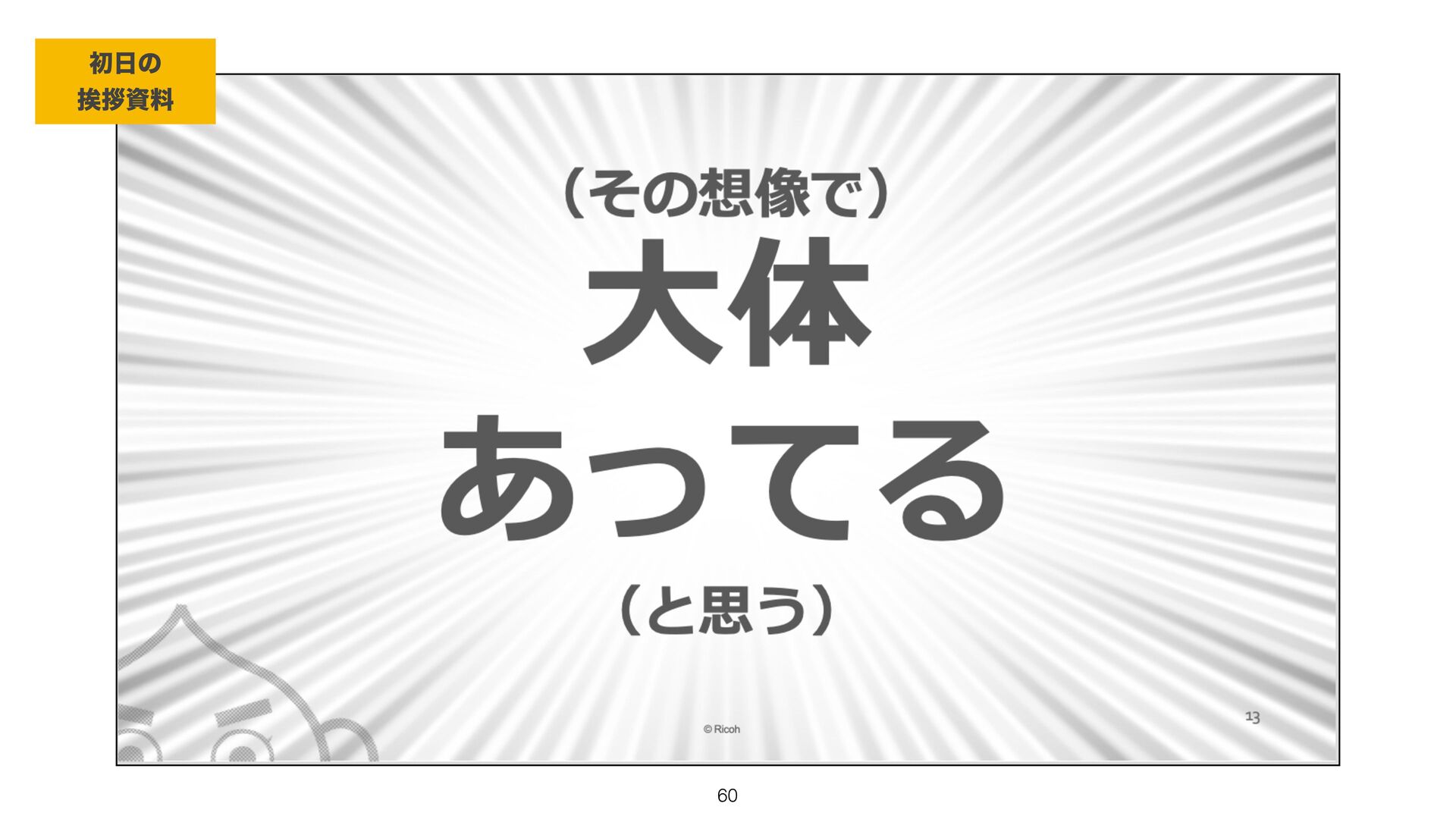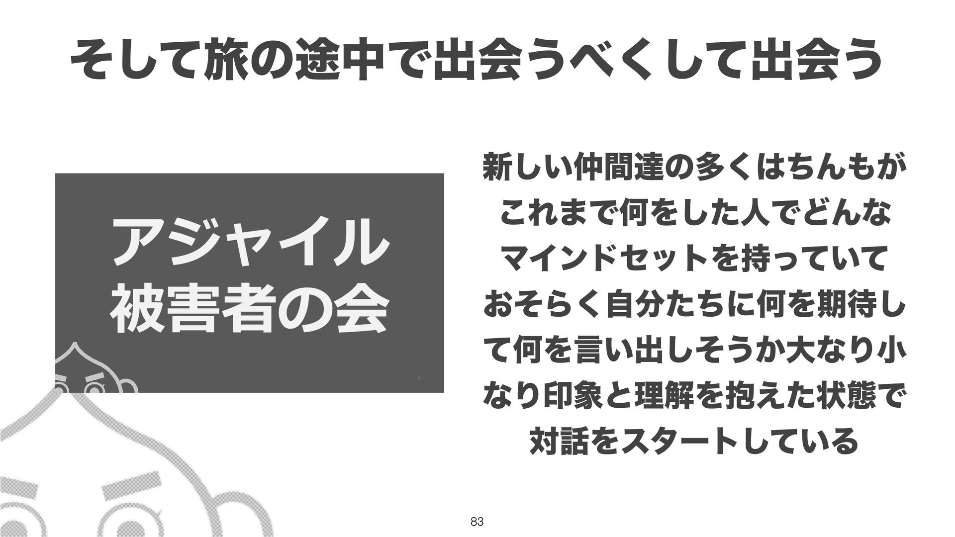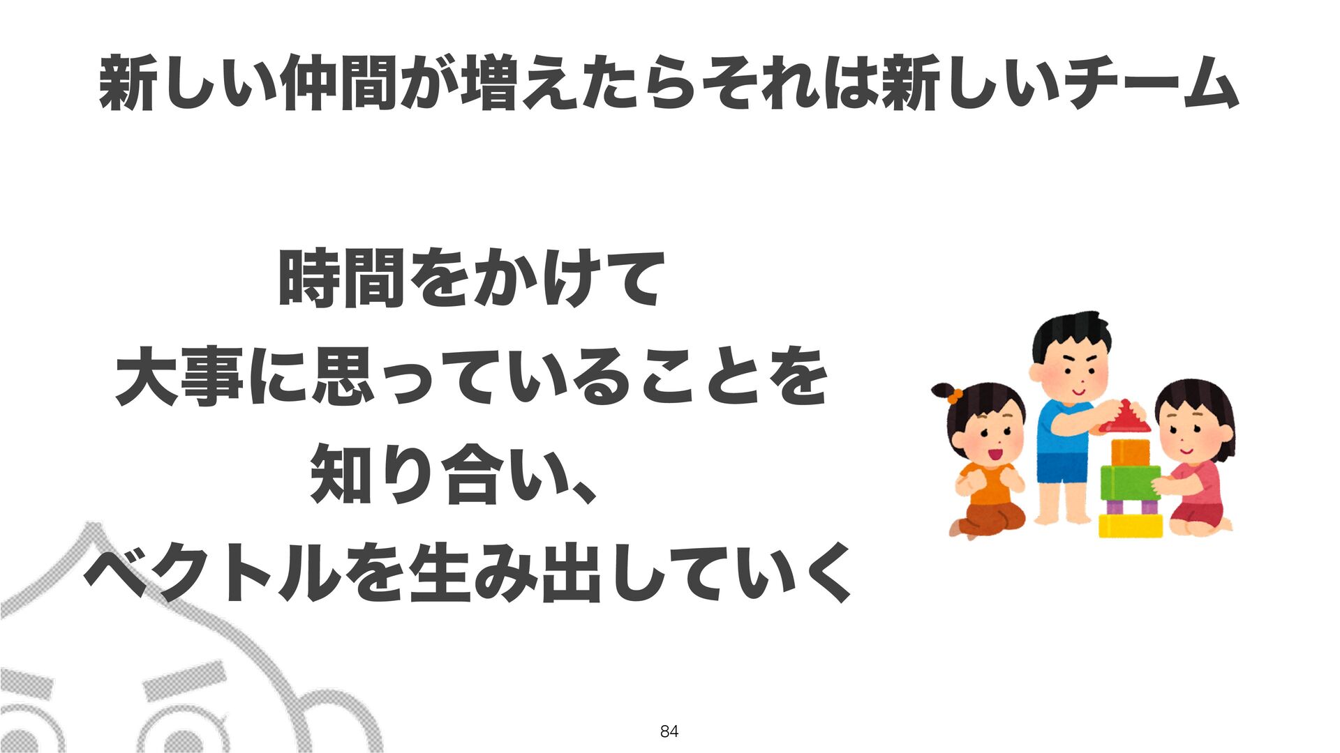 ৽͍ؒ͠ୡͷଟͪ͘Μ͕ ͜Ε·ͰԿΛͨ͠ਓͰͲΜͳ ϚΠϯυηοτΛ͍࣋ͬͯͯ ͓ͦΒࣗͨͪ͘ʹԿΛظ͠ ͯԿΛݴ͍ग़ͦ͠͏͔େͳΓখ ͳΓҹͱཧղΛ๊͑ͨঢ়ଶͰ ରΛελʔτ͍ͯ͠Δ  83 ཱྀͦͯ͠ͷ్தͰग़ձ͏ͯ͘͠ग़ձ͏
