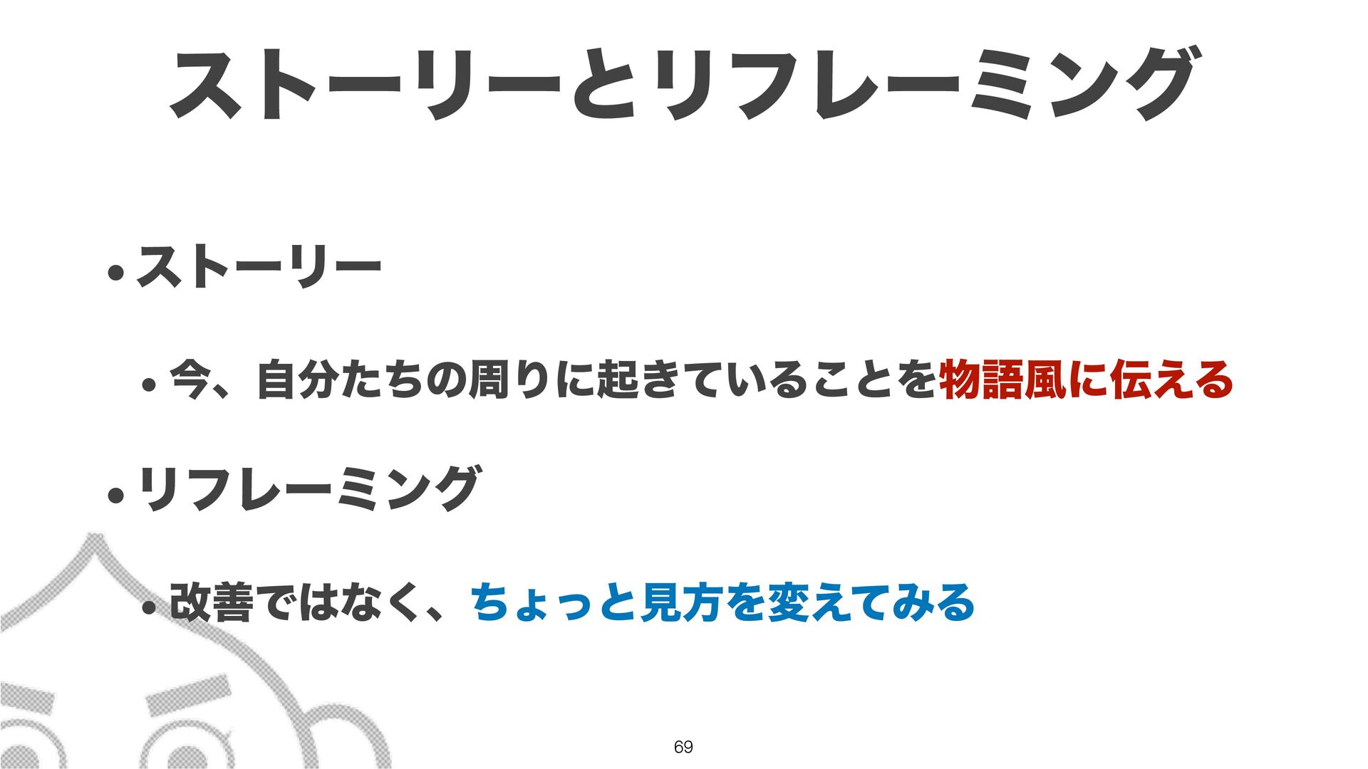 ετʔϦʔͱϦϑϨʔϛϯά wετʔϦʔ wࠓɺࣗͨͪͷपΓʹى͖͍ͯΔ͜ͱΛޠ෩ʹ͑Δ wϦϑϨʔϛϯά wվળͰͳ͘ɺͪΐͬͱݟํΛม͑ͯΈΔ  69