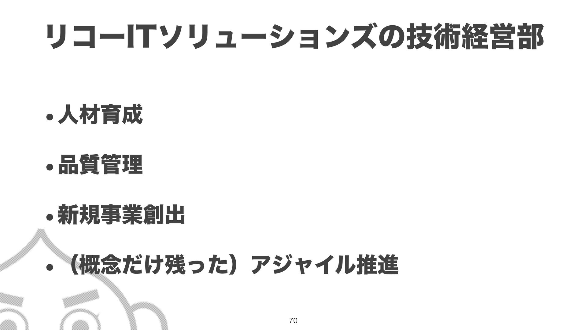 Ϧίʔ*5ιϦϡʔγϣϯζͷٕज़ܦӦ෦ wਓࡐҭ w࣭ཧ w৽نࣄۀग़ wʢ֓೦͚ͩͬͨʣΞδϟΠϧਪਐ  70