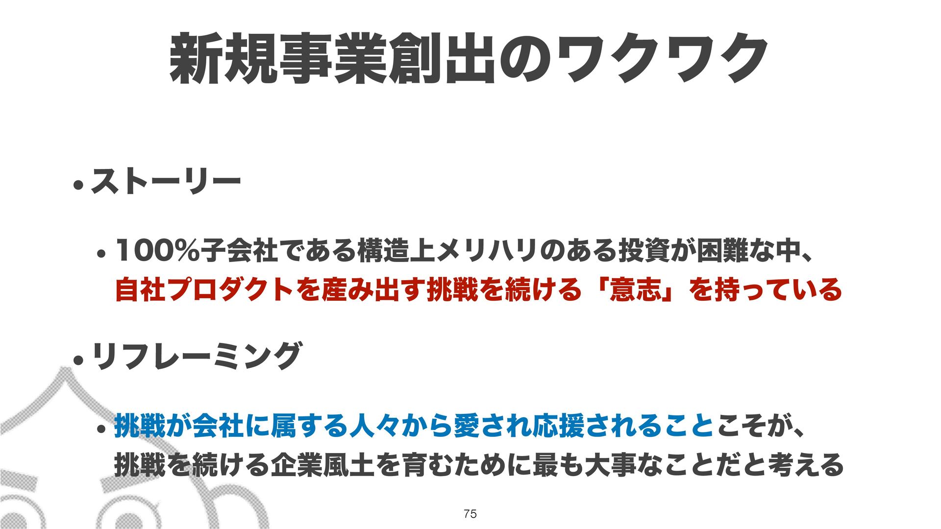 ৽نࣄۀग़ͷϫΫϫΫ wετʔϦʔ wࢠձࣾͰ͋Δߏ্ϝϦϋϦͷ͋Δࢿ͕ࠔͳதɺ ࣗࣾϓϩμΫτΛ࢈Έग़͢ઓΛଓ͚ΔʮҙࢤʯΛ͍࣋ͬͯΔ wϦϑϨʔϛϯά wઓ͕ձࣾʹଐ͢Δਓʑ͔ΒѪ͞ΕԠԉ͞ΕΔ͜ͱ͕ͦ͜ɺ ઓΛଓ͚Δاۀ෩ΛҭΉͨΊʹ࠷େࣄͳ͜ͱͩͱߟ͑Δ  75