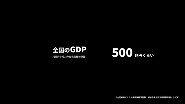 500 兆円くらい 全国のGDP 内閣府平成25年度県⺠経済計算 (内閣府平成25年度県⺠経済計算、横浜市⼤都市⽐較統計年表より試算)