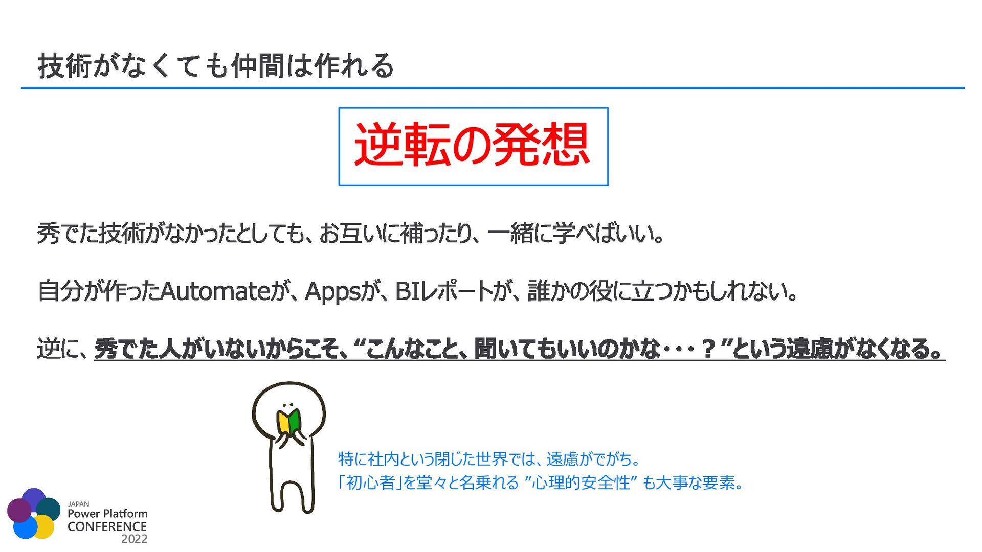2022 特に社内という閉じた世界では、遠慮がでがち。 「初心者」を堂々と名乗れる ”心理的安全性” も大事な要素。