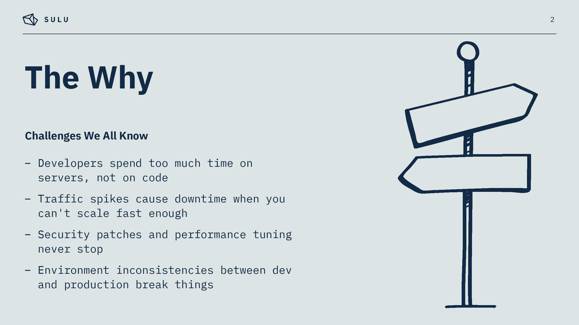 not on code – Traffic spikes cause downtime when you can't scale fast enough – Security patches and performance tuning never stop – Environment inconsistencies between dev and production break things 2 Challenges We All Know