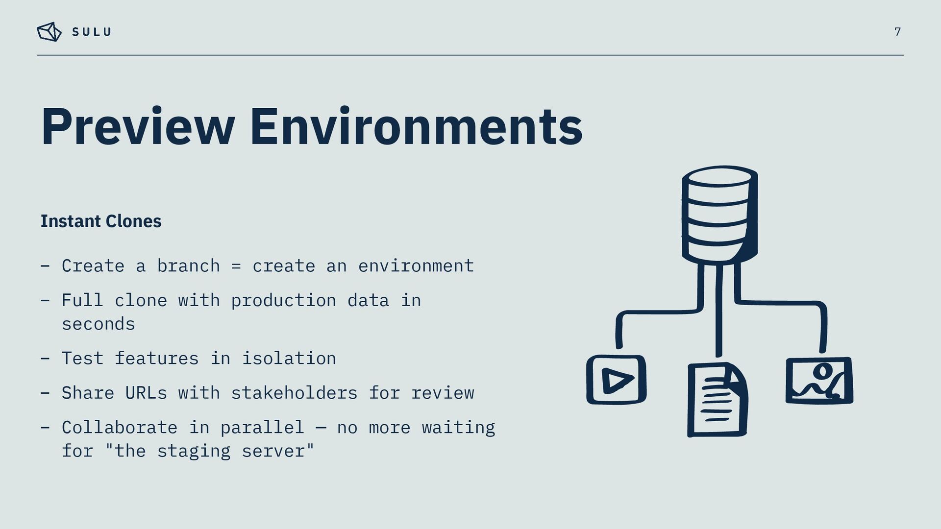 – Full clone with production data in seconds – Test features in isolation – Share URLs with stakeholders for review – Collaborate in parallel — no more waiting for "the staging server" 7 Instant Clones