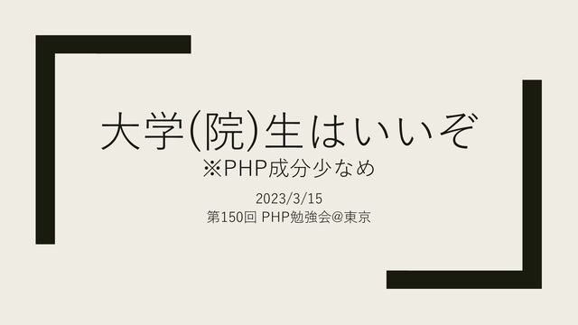 ⼤学(院)⽣はいいぞ ※PHP成分少なめ 2023/3/15 第150回 PHP勉強会@東京