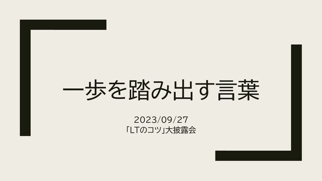 一歩を踏み出す言葉 2023/09/27 「LTのコツ」大披露会
