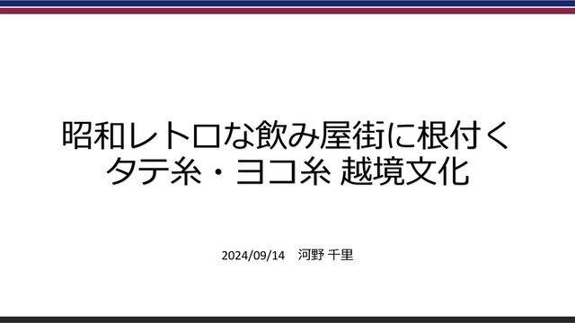 昭和レトロな飲み屋街に根付く タテ糸・ヨコ糸 越境文化 2024/09/14 河野 千里
