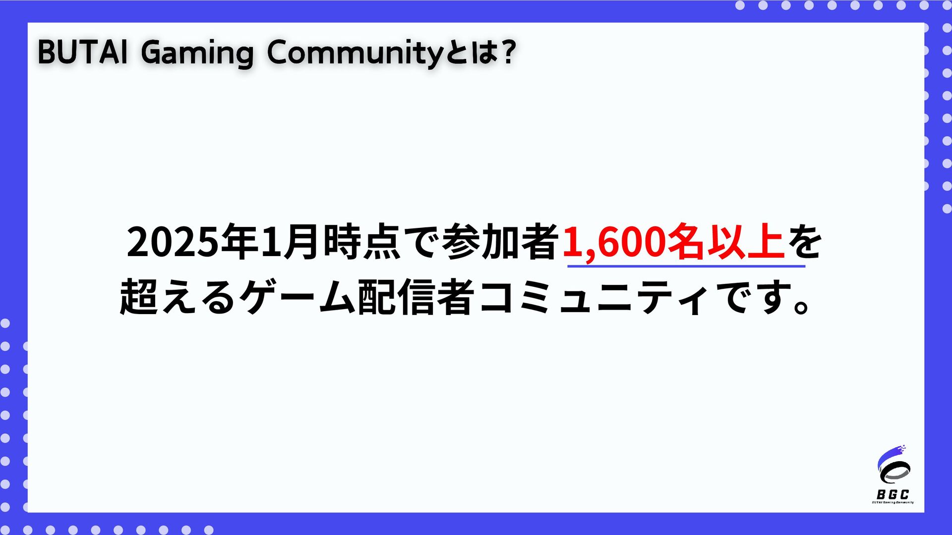 2025年1月時点で参加者1,600名以上を 超えるゲーム配信者コミュニティです。