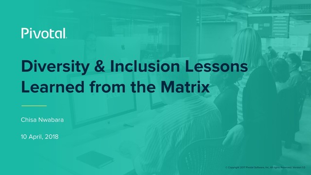 This talk will break down and address common diversity and inclusion problems using 'The Matrix' as a case study. There are interesting parallels between the film and many issues employee groups/D&I teams are facing within their organisations. Initial context will be built as we share some patterns we've noticed as working to build up a D&I space at a global level within Pivotal.