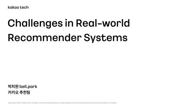 카카오 추천팀 kakao tech Copyright 2022. Kakao Corp. All rights reserved. Redistribution or public display is not permitted without written permission from Kakao.