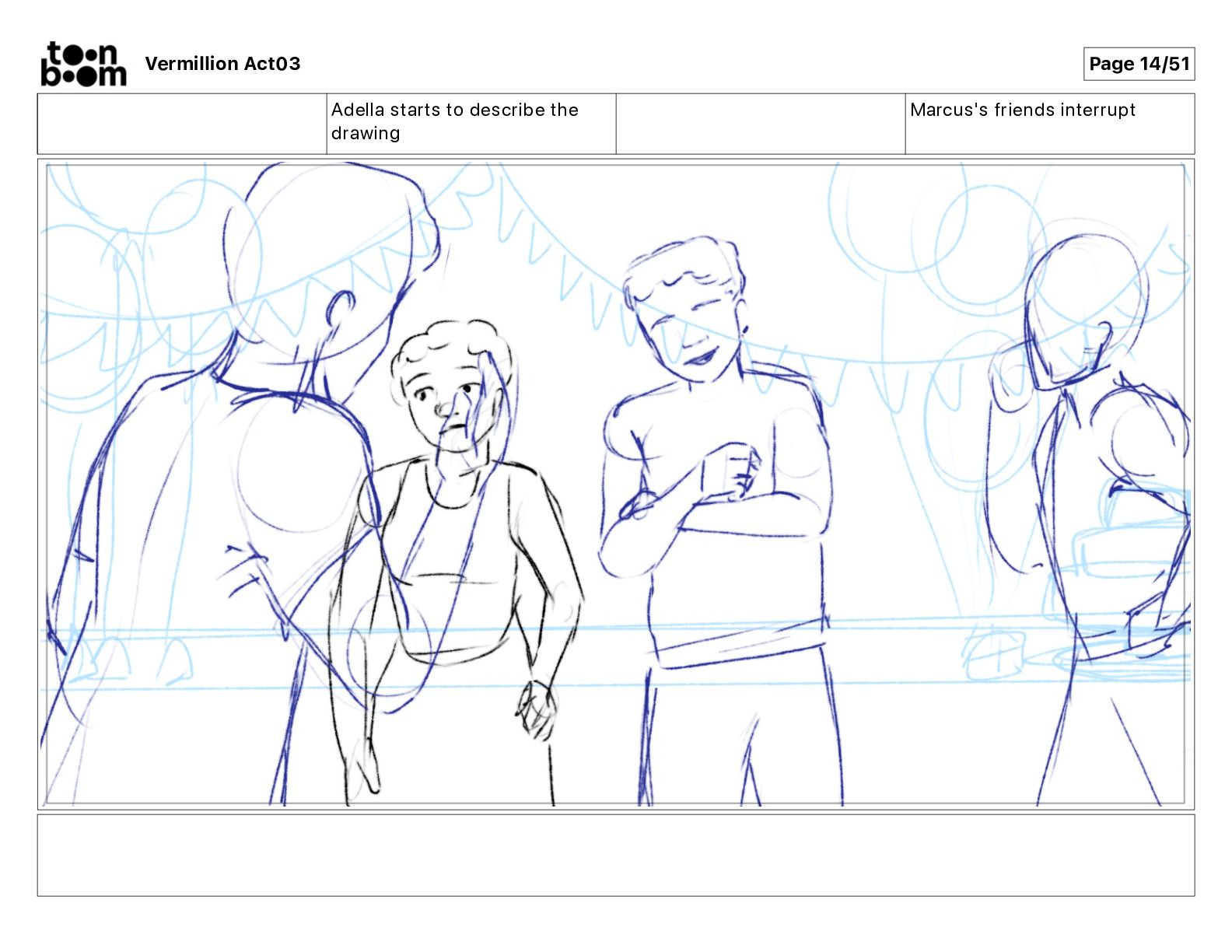 Adella starts to describe the drawing Marcus's friends interrupt Vermillion