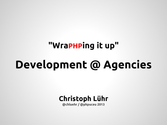 This presentation was supposed to be held @phpuceu 2013 / Berlin - we decided to merge a couple of topics so this turned out to be a different, more of a free-form "under the sun" discussion w/ Fabian Blechschmidt, Judith Andresen & Rob Searles