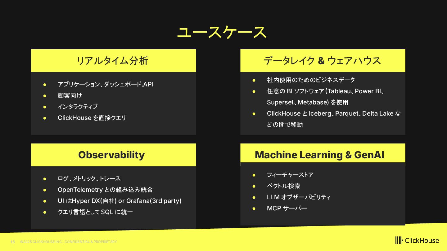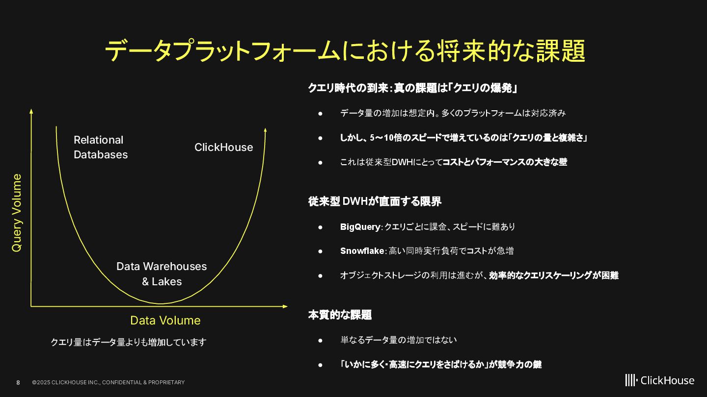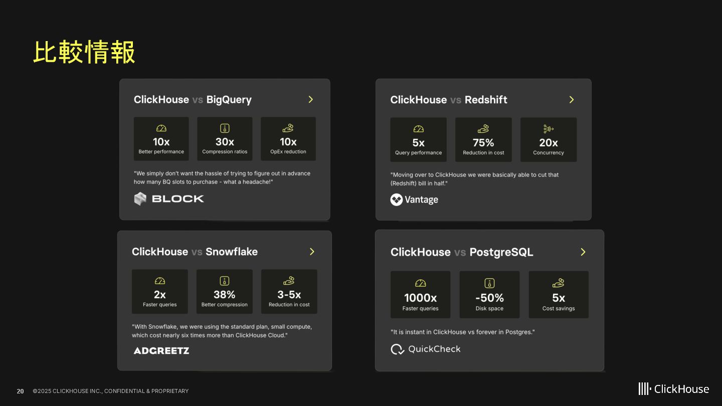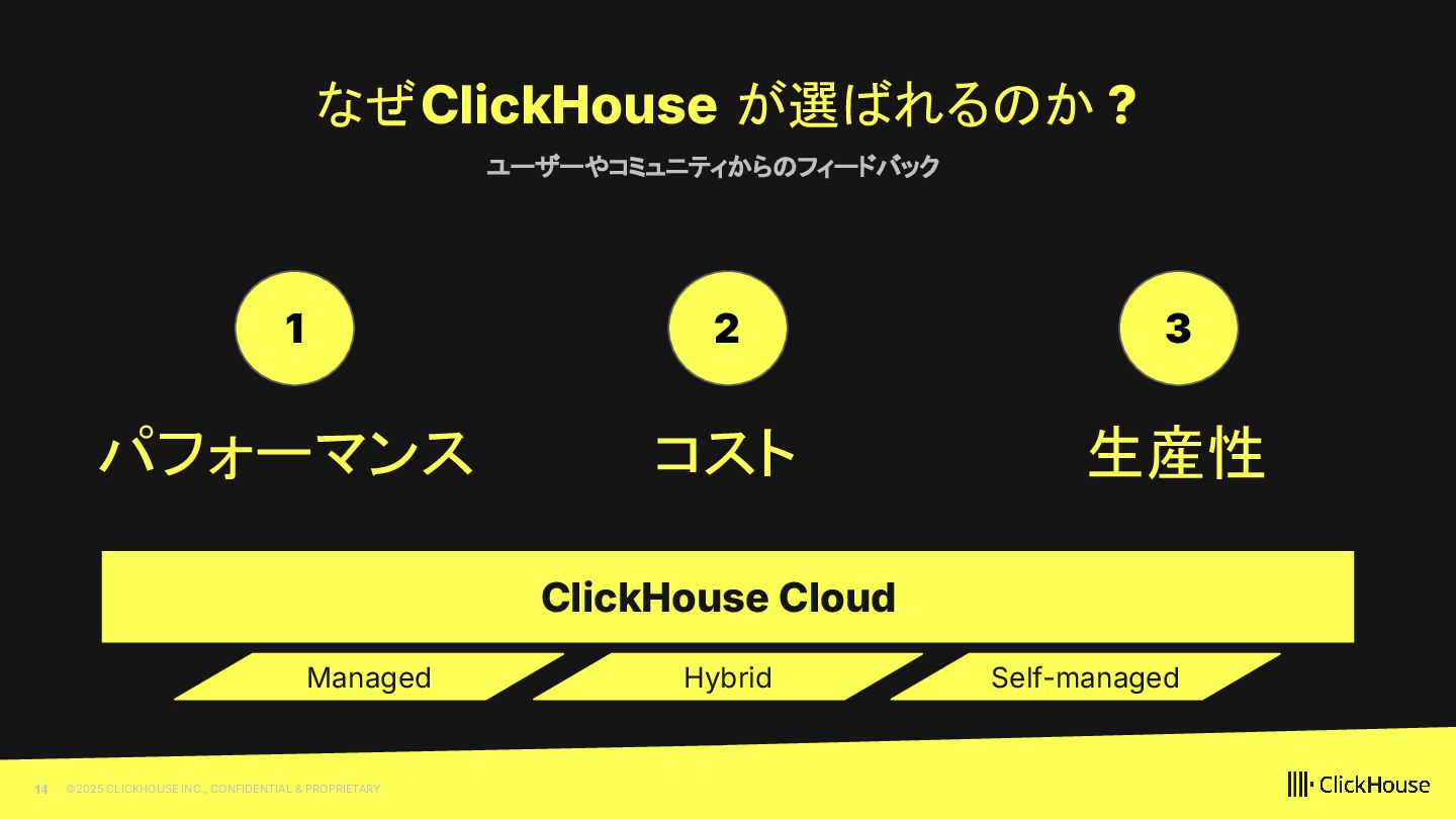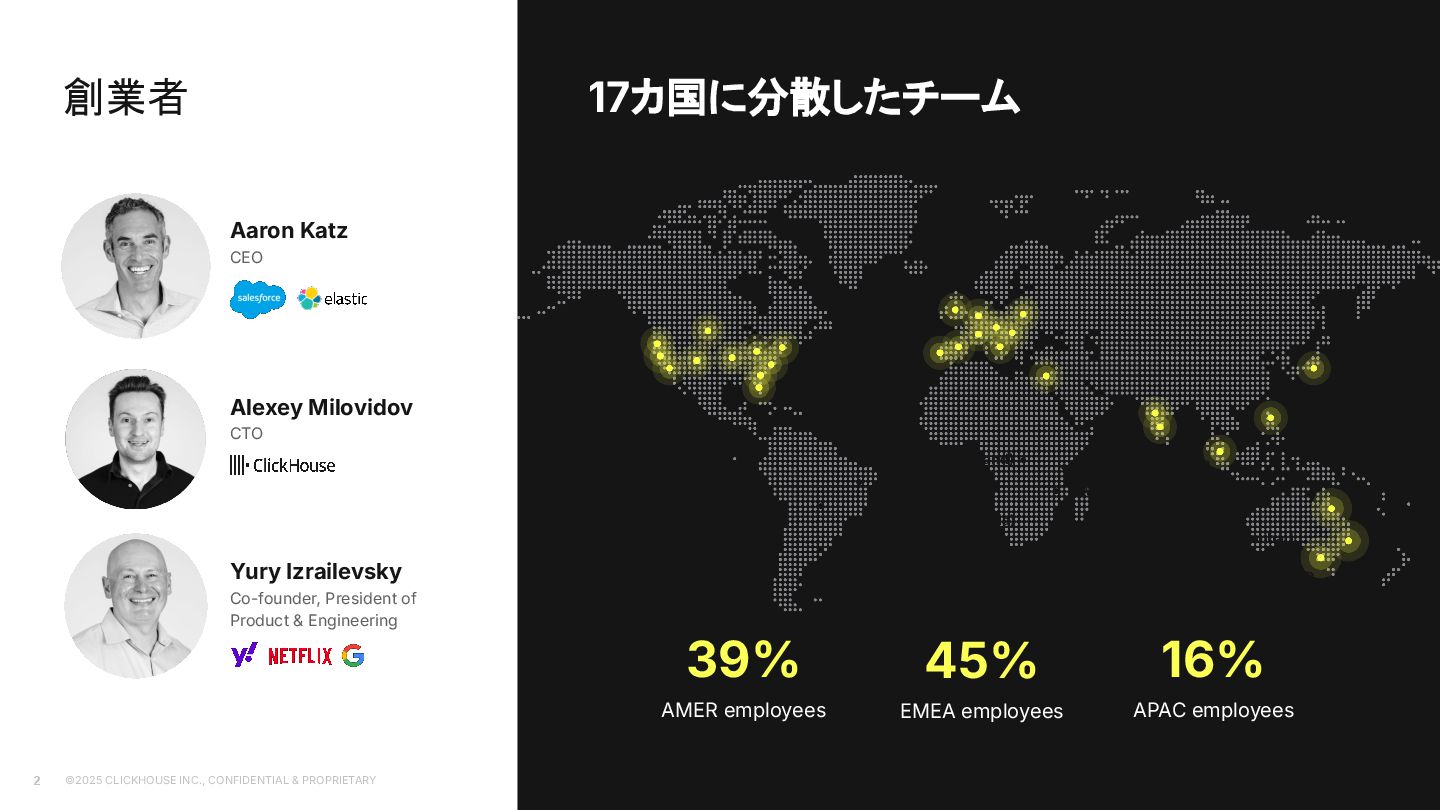 2023 ClickHouse Cloud available on GCP Dec 2022 ClickHouse Cloud Generally Available on AWS Nov 2022 100+ paying customers onboarded May 2022 Private Preview access of our ClickHouse Cloud offering Sep 2021 We closed our first round of Series A financing of $50M. On Sept 20, we launched publicly Aug 2021 On Aug 11, ClickHouse, Inc. was incorporated in the US 2009 The first ClickHouse prototype appeared 100+ releases June 2016 On Jun 15, ClickHouse was released under the Apache 2.0 licence June 2024 ClickHouse Cloud Generally Available on Azure Feb 2025 BYOC GA on AWS Oct 2021 We closed our follow up Series B financing of $250M May 2025 We closed our Series C financing of $350M, lead by khosla ventures