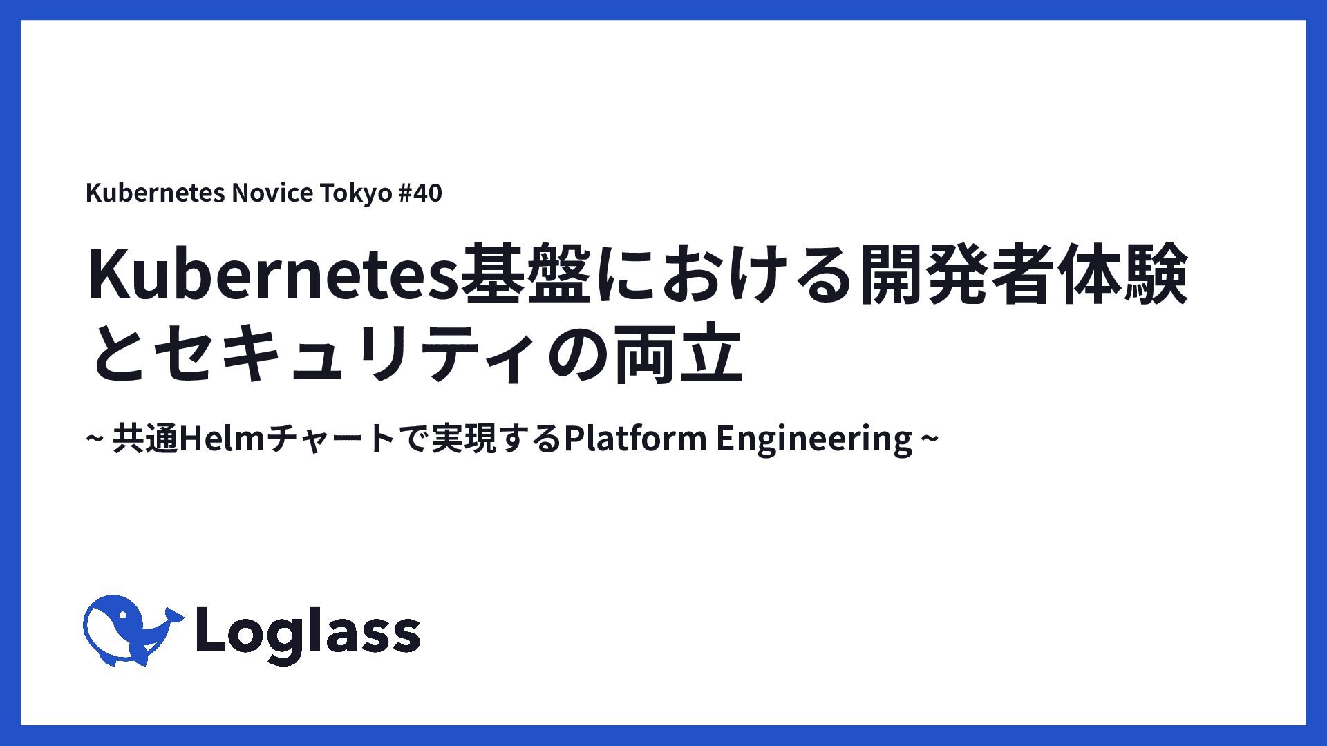 Kubernetes基盤における開発者体験 とセキュリティの両⽴ 1 Kubernetes Novice Tokyo #40 ~ 共通Helmチャートで実現するPlatform Engineering