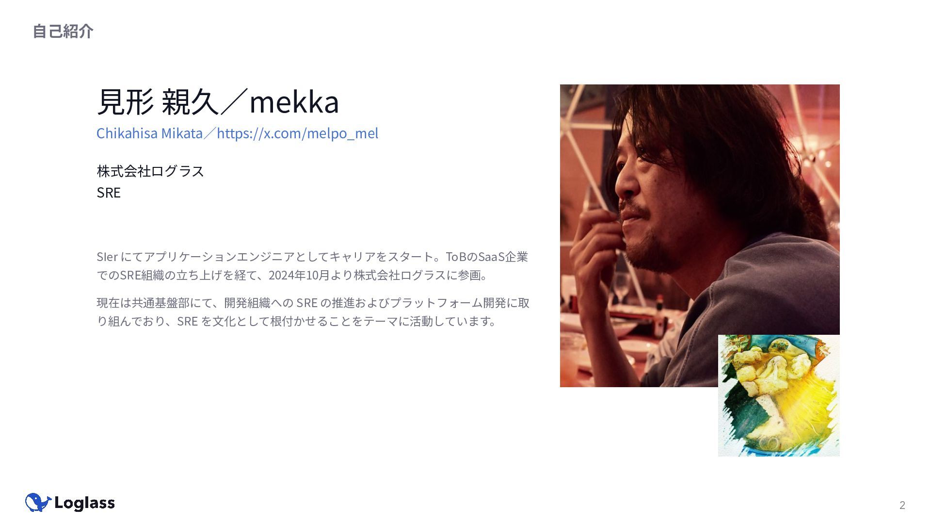 株式会社ログラス SRE ⾒形 親久∕mekka Chikahisa Mikata∕https://x.com/melpo_mel