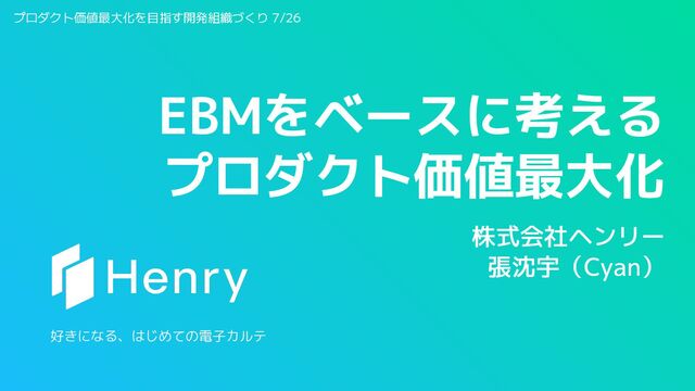 株式会社ヘンリー 張沈宇(Cyan) プロダクト価値最大化を目指す開発組織づくり 7/26